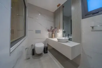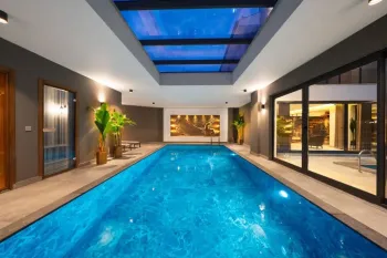 تشمل ميزات المنزل: مسبح داخلي مسخّن ، حمام تركي وساونا، مطبخ مجهز بالكامل ، نظام إنذار حديث ، حمامات فاخرة ، نظام تسخين مائي بالطاقة الشمسية ، وحدات تكييف هواء في جميع الغرف ، وأكثر من ذلك بكثير. الفيلا معروضة للبيع مفروشة بالكامل وهي جاهزة للانتقال الفوري للعيش فيها.