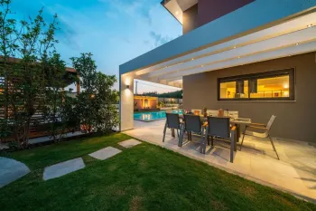 تم بناء هذه الفيلا المنفصلة الجديدة وفقًا لمعايير الفخامة من قبل أحد كبار المطورين في فتحية، وتقع في منطقة سكنية في كاليس وعلى بعد مسافة قصيرة سيرًا على الأقدام من الشاطئ الشهير للاسترخاء وقضاء الوقت على شاطئ البحر.