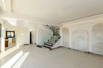 The villa enters on the ground floor into a spacious living room with offset dining area. The kitchen is semi-separate and fully equipped with branded white goods and appliances. There is a ground floor bedroom and family bathroom on this level. Sliding doors open to the garden and swimming pool.