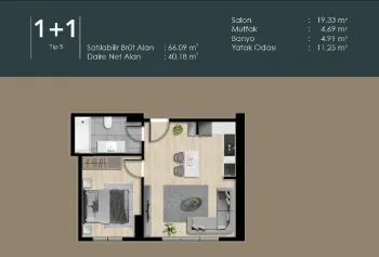 1+1 bedroom apartments measuring from 63m2 and for sale at 270,000 USD