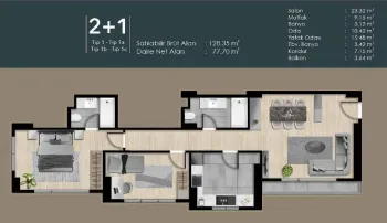2+1 bedroom apartments measuring from 79m2 and for sale at 325,000 USD