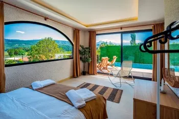 The property has two bedrooms and could easily sleep up to four people at once. Both of the rooms are master sized and equipped with their own private en-suite bathrooms with walk-in showers. One of the rooms has a dressing room attached. Bedrooms have lovely views of the surrounding greenery and canyon – intertwining life with nature.