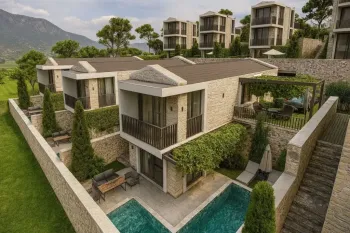Constructed using natural stone and features, this beautiful detached home is nestled within a residential area of Kalkan in Turkey and is just a short driving distance away from the town centre offering a range of amenities and things to do. For more information about life here, please enquire today to speak with our local advisors.