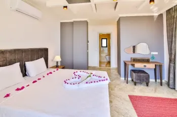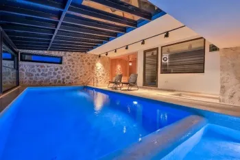 Built to luxury standards throughout, this detached villa is nestled in Ortaalan area of Kalkan and has a private indoor and outdoor swimming pool – just a few minutes away from the town centre and famous Harbour.