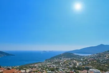 This panoramic sea view designer property is found in Kalkan and is on the market today as completely furnished and ready to move in immediately – situated just ten minutes walking distance away from the town centre and amenities.