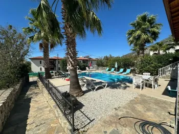 Ready to move in immediately is this charming villa for sale in Ovacik area of Fethiye, forming part of a residential complex with facilities including a shared swimming pool and landscaped gardens for relaxing outside all year round.