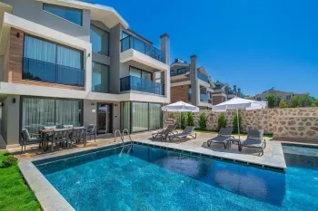 This detached villa is located in Koca Calis area of Fethiye and is just a few minutes driving distance away from the bustling promenade and beach for relaxing and spending hot summer days with loved ones.