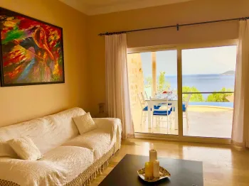 Enjoying amazing views of the sea, this beautiful home is nestled within a peaceful area of Kalkan and has its own private swimming pool and landscaped garden for relaxing and spending time outside.