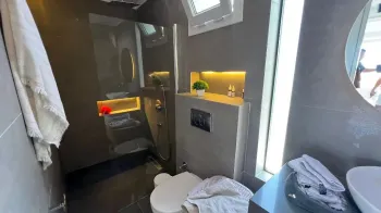 A staircase leads up to the first floor where a hallway provides access to two bedrooms. Both of the rooms are double sized and this flat could easily sleep up to four people at any one moment. There is a family bathroom on this level with walk-in shower. Completing this floor is a shared balcony for sitting and relaxing.