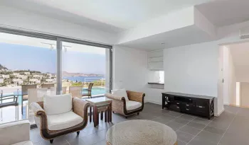 Looking out towards the sea with panoramic views stretching endlessly, this world class villa forms part of an elite project within Yalikavak area of Bodrum and is just minutes away from the sea with access to a beach.