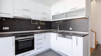 The villa enters into a spacious living room with offset dining area and kitchen. The kitchen is equipped with branded appliances and white goods. The lounge is bright and airy, ideal for evenings at home with loved ones. Doors open from the lounge and kitchen to a private swimming pool and terrace.