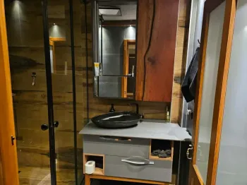 With an unusual and unique design, this country escape is found in a private plot within Uzumlu surrounded by wonderful mountain views and nature from all sides. Found in a peaceful location, take in daily walks and surround yourself with sunshine. On the market as furnished and ready for a family to move in.