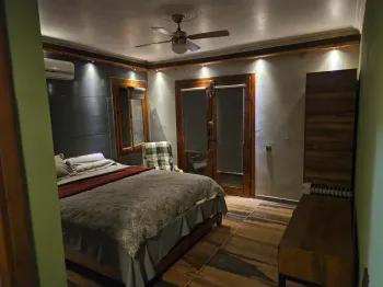 A staircase leads to the upper floor where a large master bedroom is located. This room has an amazing view of the surrounding forest and is complete with its own walk-in dressing room and en-suite private bathroom. A long balcony has tremendous views and lots of room for sitting and relaxing.
