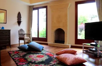 The mansion is on the market as completely furnished and decorated. Features include the following: Sauna, Jacuzzi, Turkish Bath, home gym, wine cellar, air-conditioning units in all rooms, central heating and radiators, four fireplaces, food elevator, marble and wooden flooring, storage and laundry room, artesian well, backup electricity generator, and lots more.