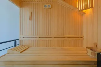 The villa offers 250m2 internal living space and enters into a large open plan lounge with offset dining area and luxury kitchen. The kitchen is equipped with branded appliances, while doors open from the lounge to the poolside and garden. There is an indoor swimming pool and sauna on this level.