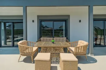 Within ten minutes to the nearest beach and seaside, this spacious villa is nestled in a highly private area of Ciftlik and has its own swimming pool and green landscaped garden for sitting and spending summer days outside.
