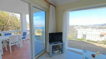 With views of the sea, sunset, and Greek Islands, this three bedroom apartment is located within a popular complex in the Geris area of Yalikavak and has access to a swimming pool and communal facilities.