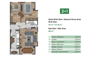 2+1 bedroom apartments measuring from 101m2 and priced from 275,000 USD