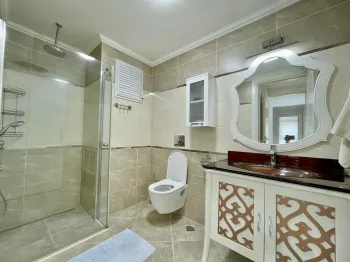 The apartment is on the market today as completely furnished and decorated. Features of the unit include the following: air-conditioning units installed, kitchen white goods and appliances, fitted bathrooms and showers, high quality fixtures and fittings throughout, and lots more for an easy move to Alanya.