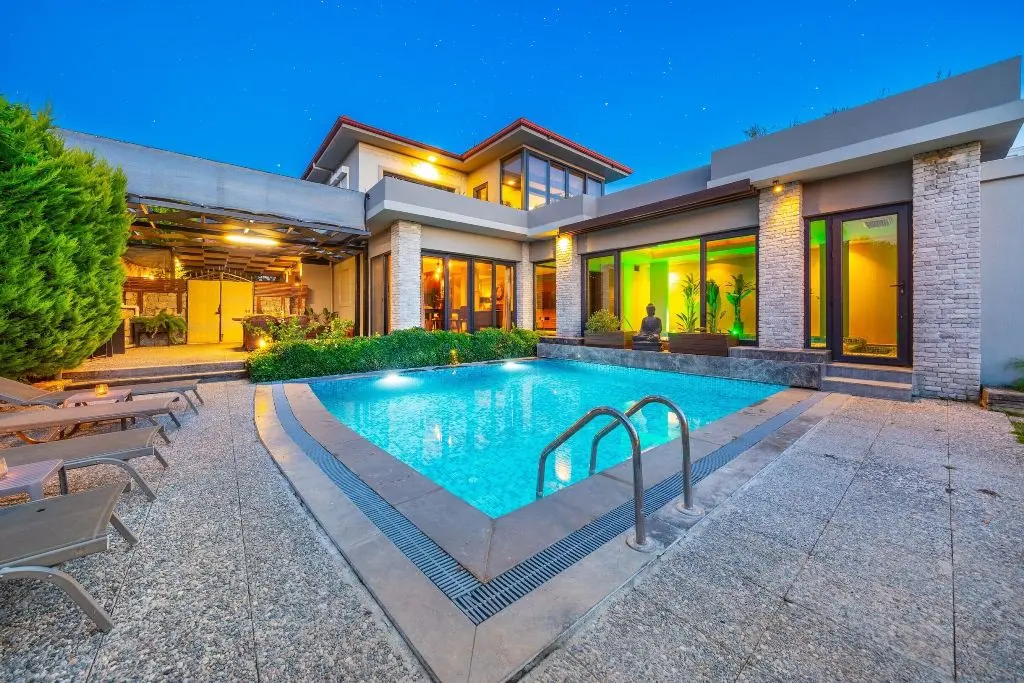 这家别墅位于欧瓦吉克(Ovacik)的住宅区,距离西撒奥努Hisaronu度假胜地仅有很短的步行路程,那里设有热闹的酒吧和餐馆。可以驱车几分钟之内到达著名的蓝礁湖厄吕代尼兹海滩(Blue Lagoon Oludeniz Beach),在那里可以放松并在海边消磨时光。由于位置优越,对于希望在土耳其投资房地产的人来说,别墅的租赁历史悠久。附近有公共交通工具,可在费特希耶(Fethiye)周围前往市中心,购物中心,医院以及所有其他需要的地方。
