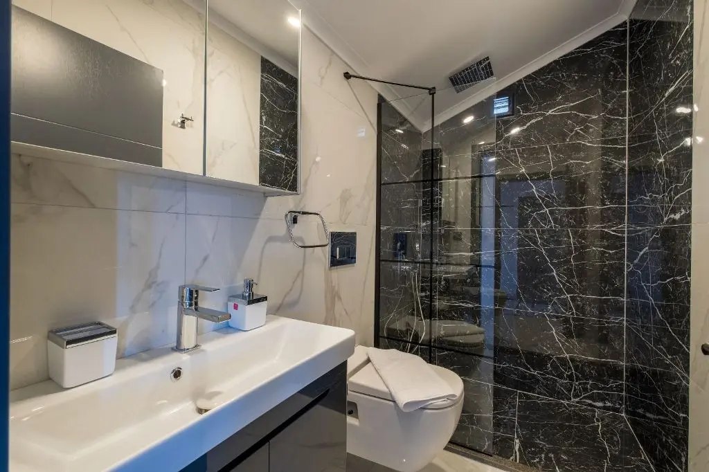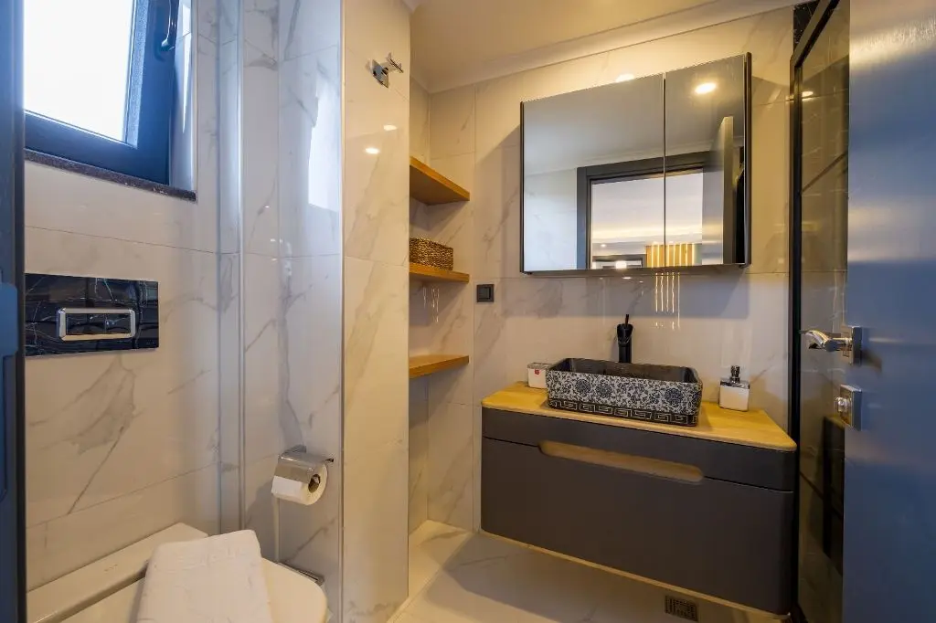 该物业家具和装饰一应俱全。特点包括:所有房间都装有空调、中央供暖管道、LED 照明、双层玻璃门窗、所有窗户都装有蚊帐、太阳能热水板、闭路电视报警系统等,让您轻松入住费特希耶的卡利斯地区。