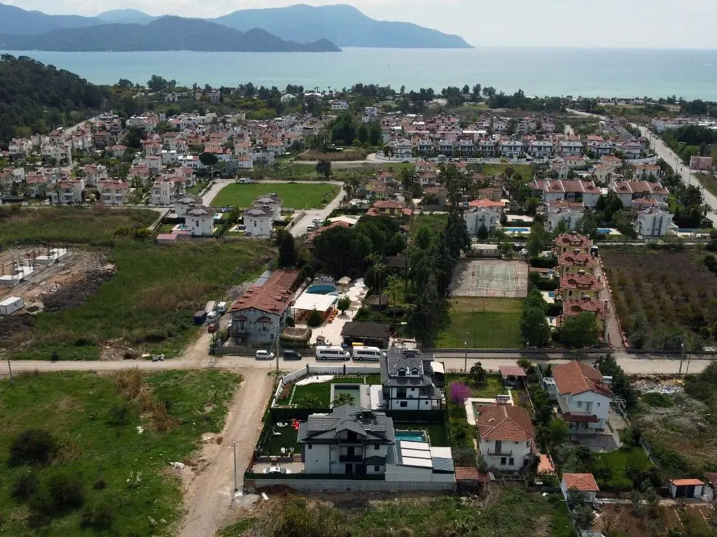 眺望大海和费特希耶埃塞码头,这个美丽的房子在卡拉戈兹勒住宅区内出售,有五间卧室,适合希望在土耳其长期共同生活的家庭。