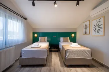 顶楼还有两间卧室。两间卧室都是双人间,都有独立的私人浴室。其中一个房间还可以通往一个宽敞的屋顶露台,在这里可以坐下来休息,欣赏宁静的景色。